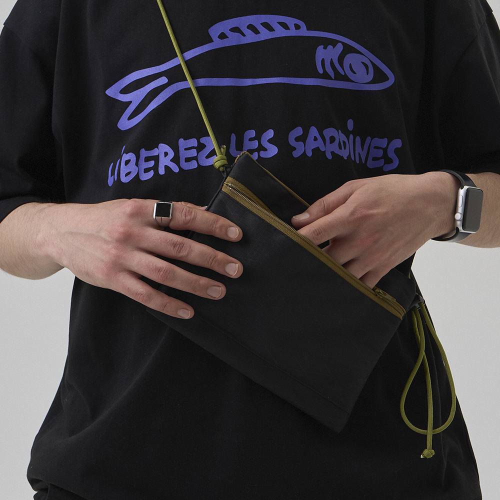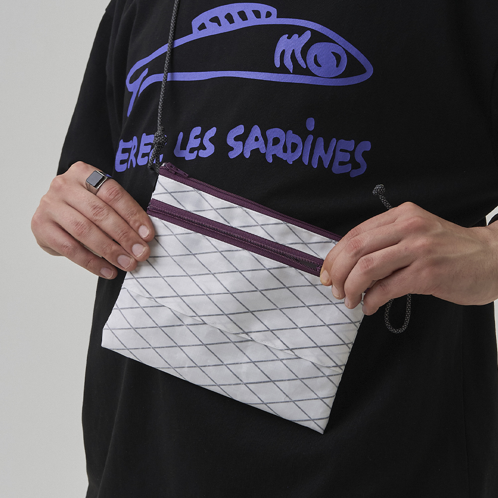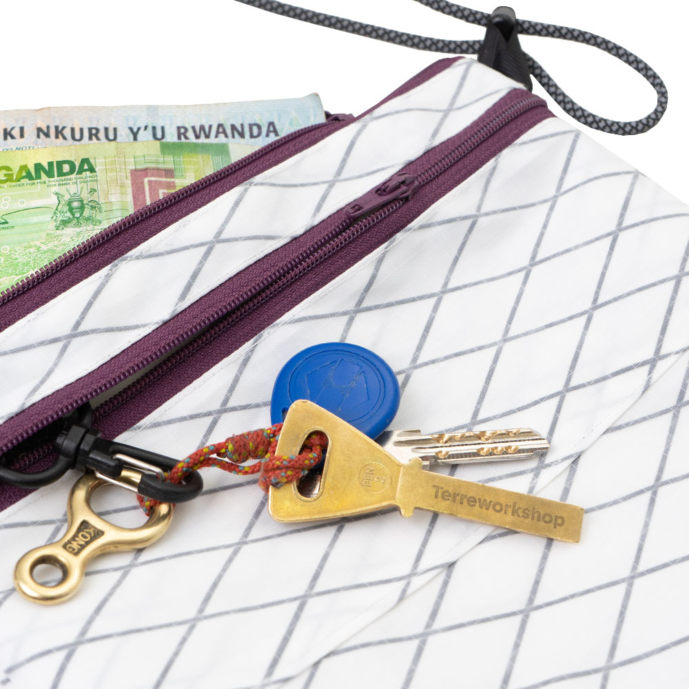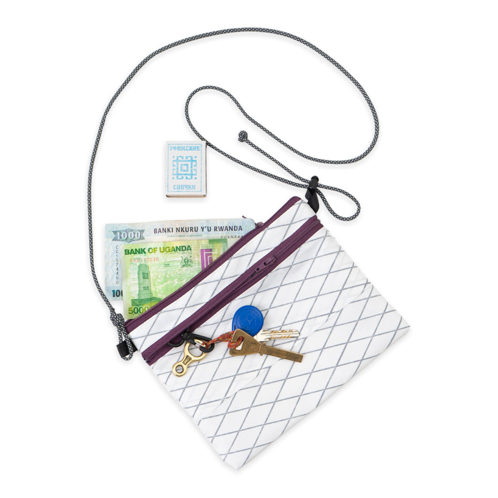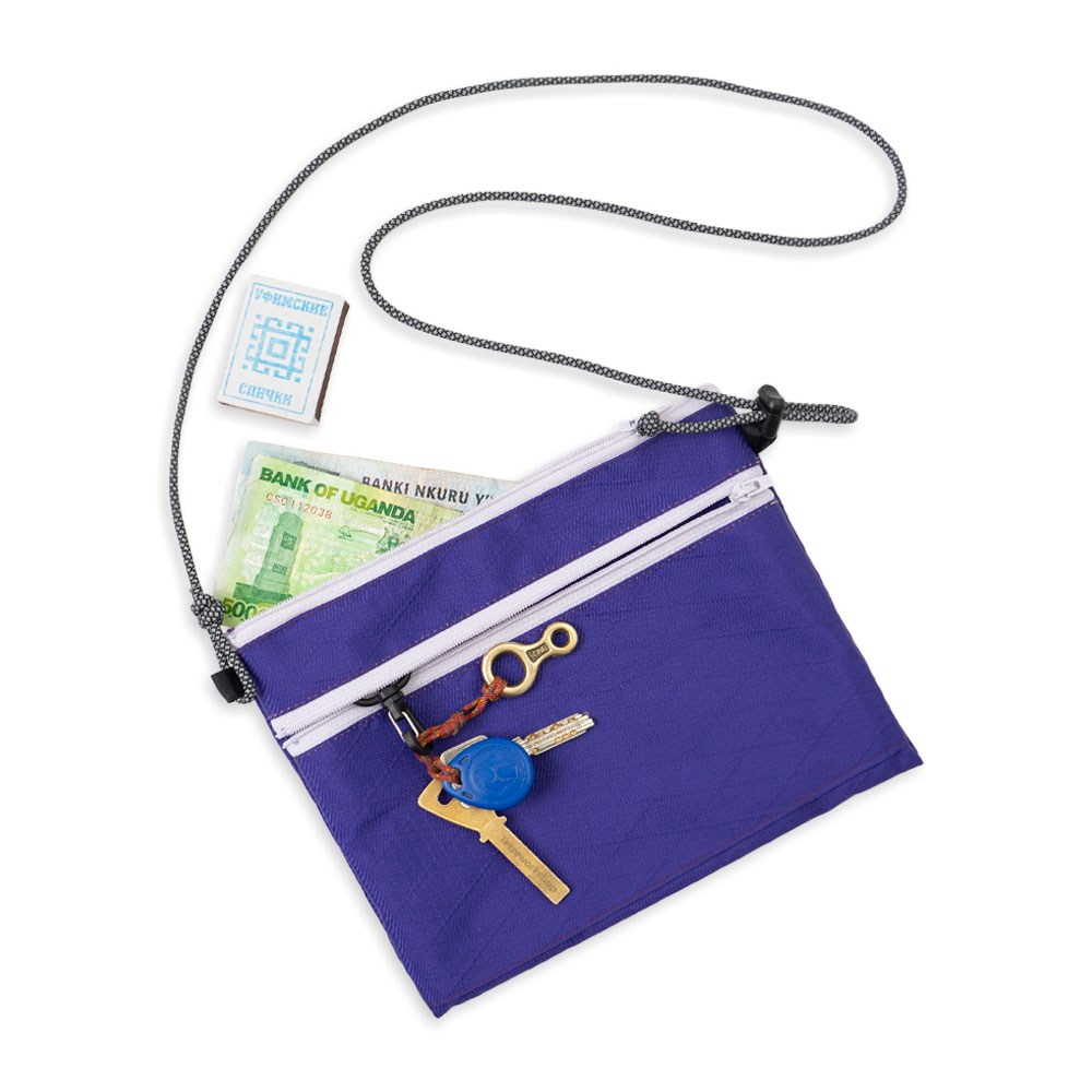 Сумка для документов и важных мелочей. Изготовлена из прочнейшего материала x-Pack. Два отделения на молнии YKK, Ручка из репшнура регулируется по длине с помощью кулисы. Карабин для ключей внутри маленького кармана.