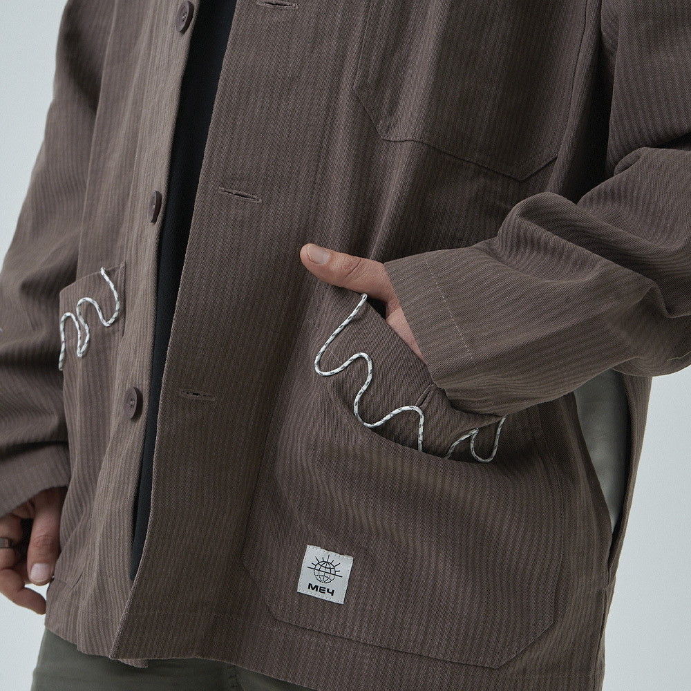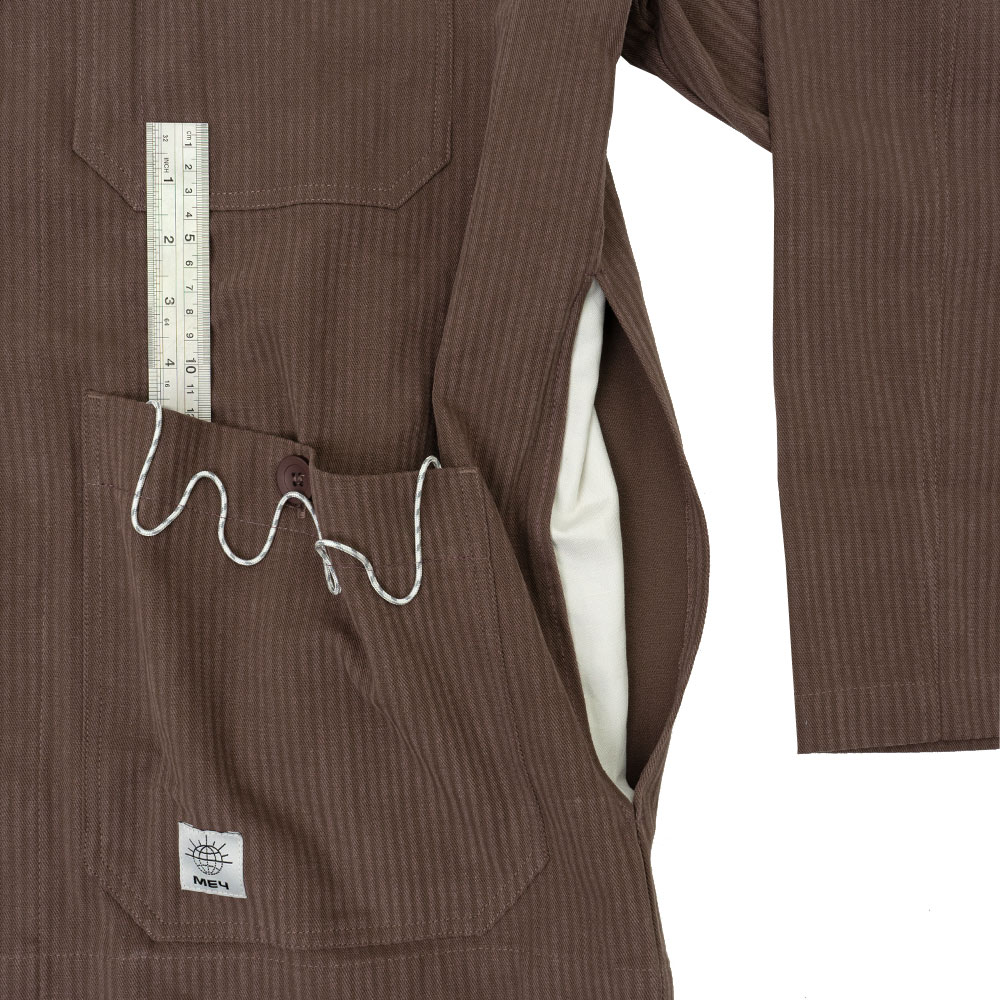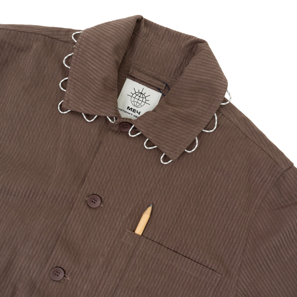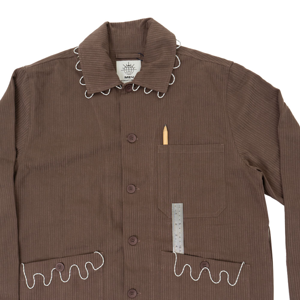 Кастомизированная куртка МЕЧ в рабочем стиле, которую также можно носить в качестве овершота. Изготовлена из плотного хлопка. Прямой силуэт с отложным воротником, который мы дополнили фигурной отсрочкой из светоотражающего репшнура. Карман на груди мы отстрочили для фиксации карандаша.Вместительные нижние карманы с пуговицыами мы отстрочили репшнуром, а в правый карман добавили карабин для ключей.