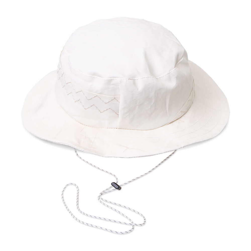Мы изготовили уникальные панамы из белого паруса, который отслужил своё в Средиземном море и теперь будет защищать от солнца своих обладателей.