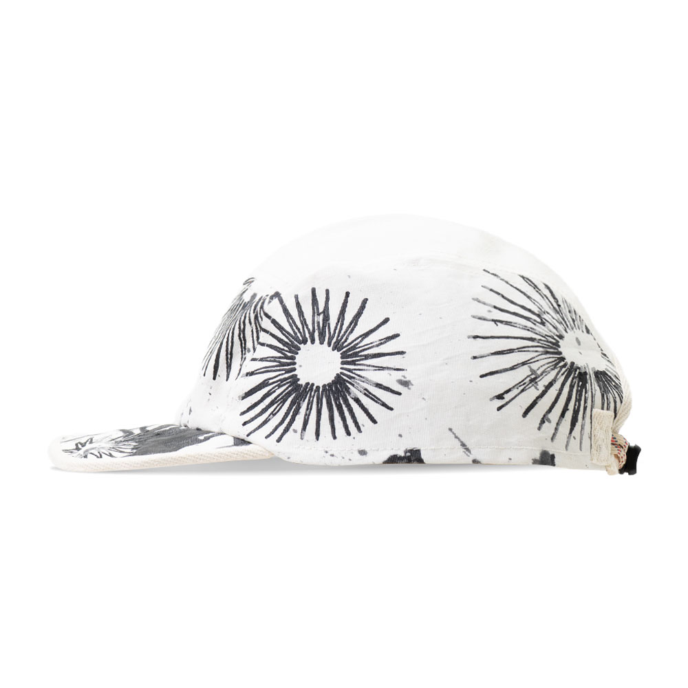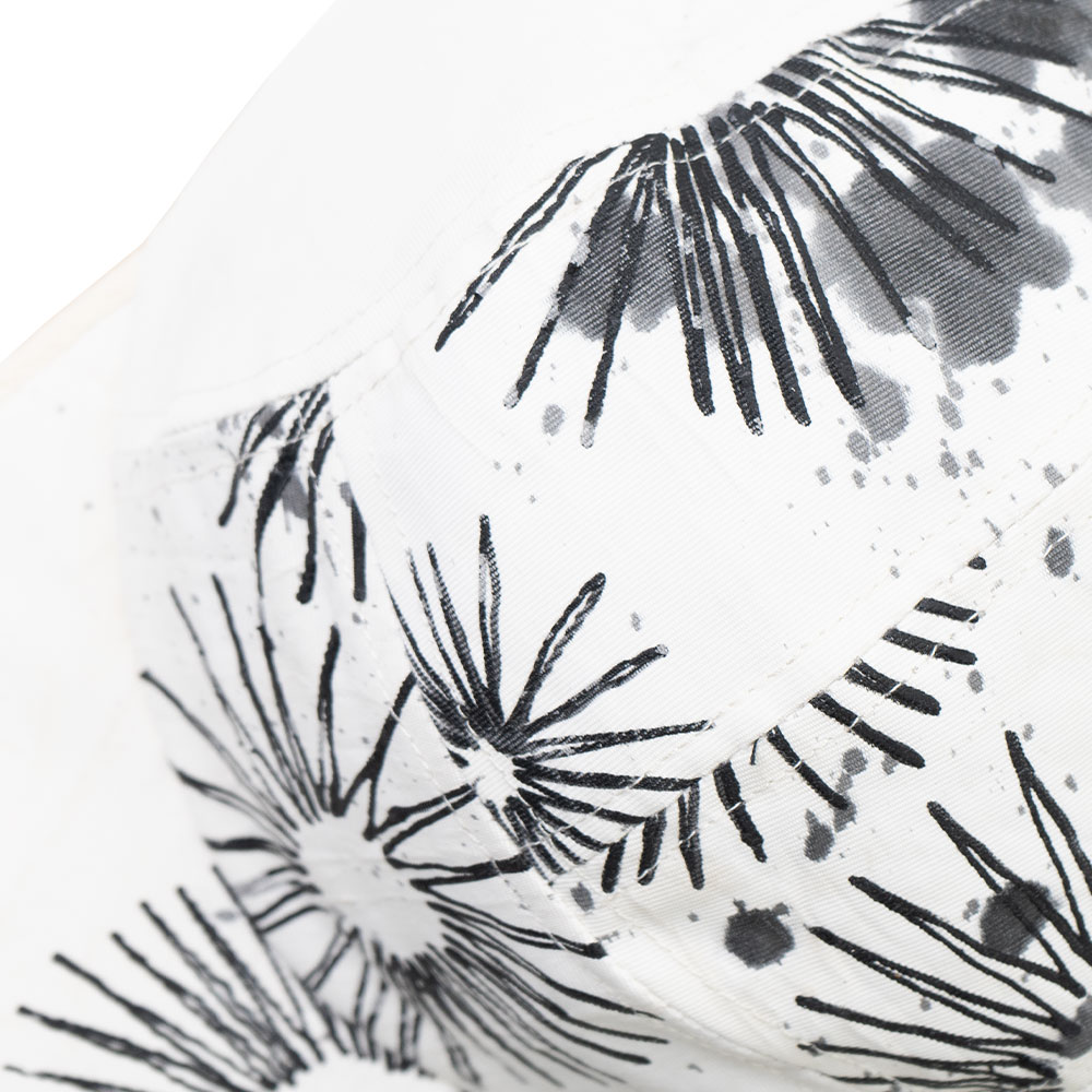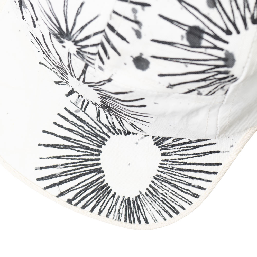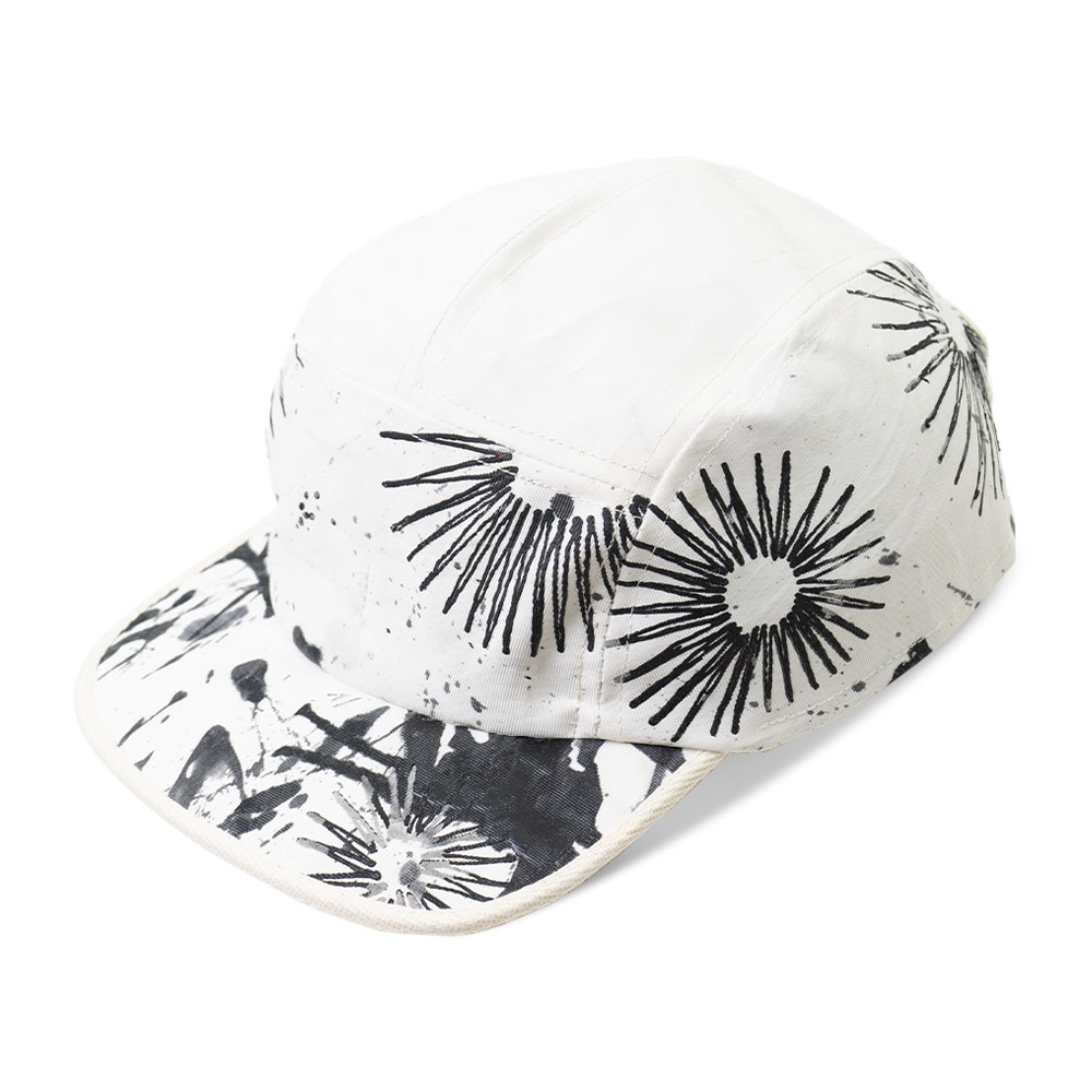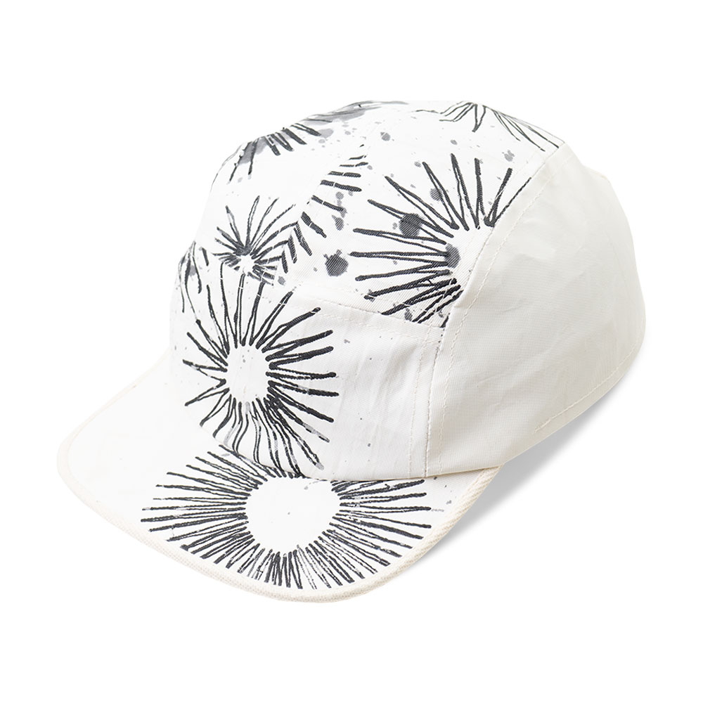 Пятипанельная апсайкл кепка из средиземноморского паруса. Бело-молочный парус разрисовала для нас Настя – основательница бренда Naomakes.