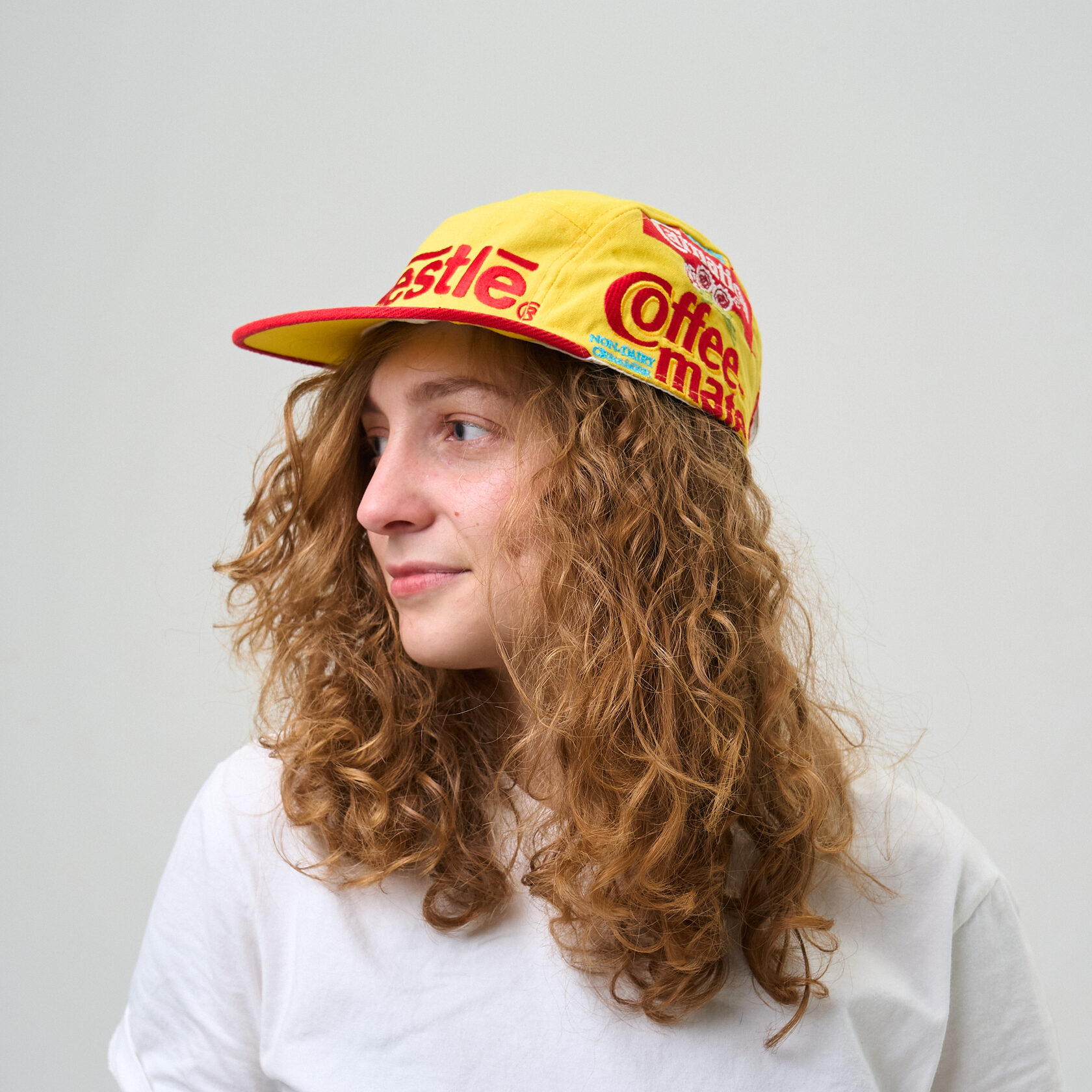 Глубокая посадка, стандартный козырёк, красная отсрочка. Логотип командного спонсора Nestle на передней панели, Лого Coffee-mate левой панели. Регулировка размера на кулисе.