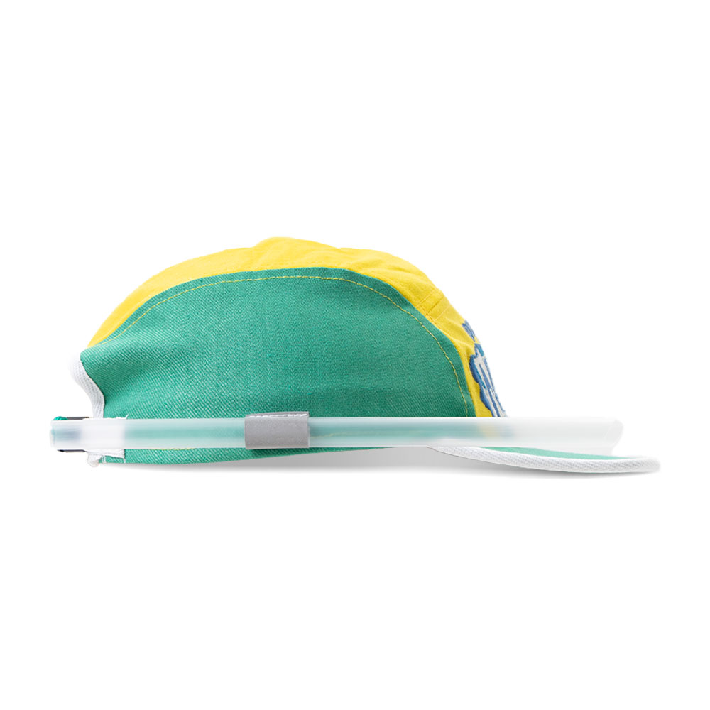 Пятипанельная кепка из оригинального гоночного комбинезона гонщика NASCAR и лазурно-зелёного итальянского хлопка.