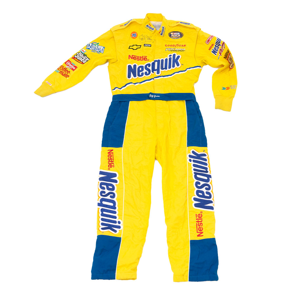 Обладатель комбинезона – один из гоночных братьев Грин, Джефф, в 2000 году выступал за команду Nesquick Chevy и установил рекорд серии в ТОП-5 побед сезона.