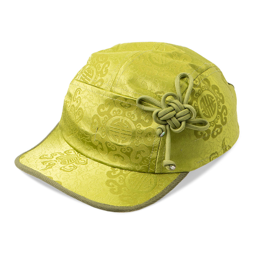 Атлас цвета монгольского зелёного яблока, имеет народный орнамент региона. Иероглиф из репшнура на передней панели. Средняя посадка короткий козырёк. Регулировка размера на кулисе.