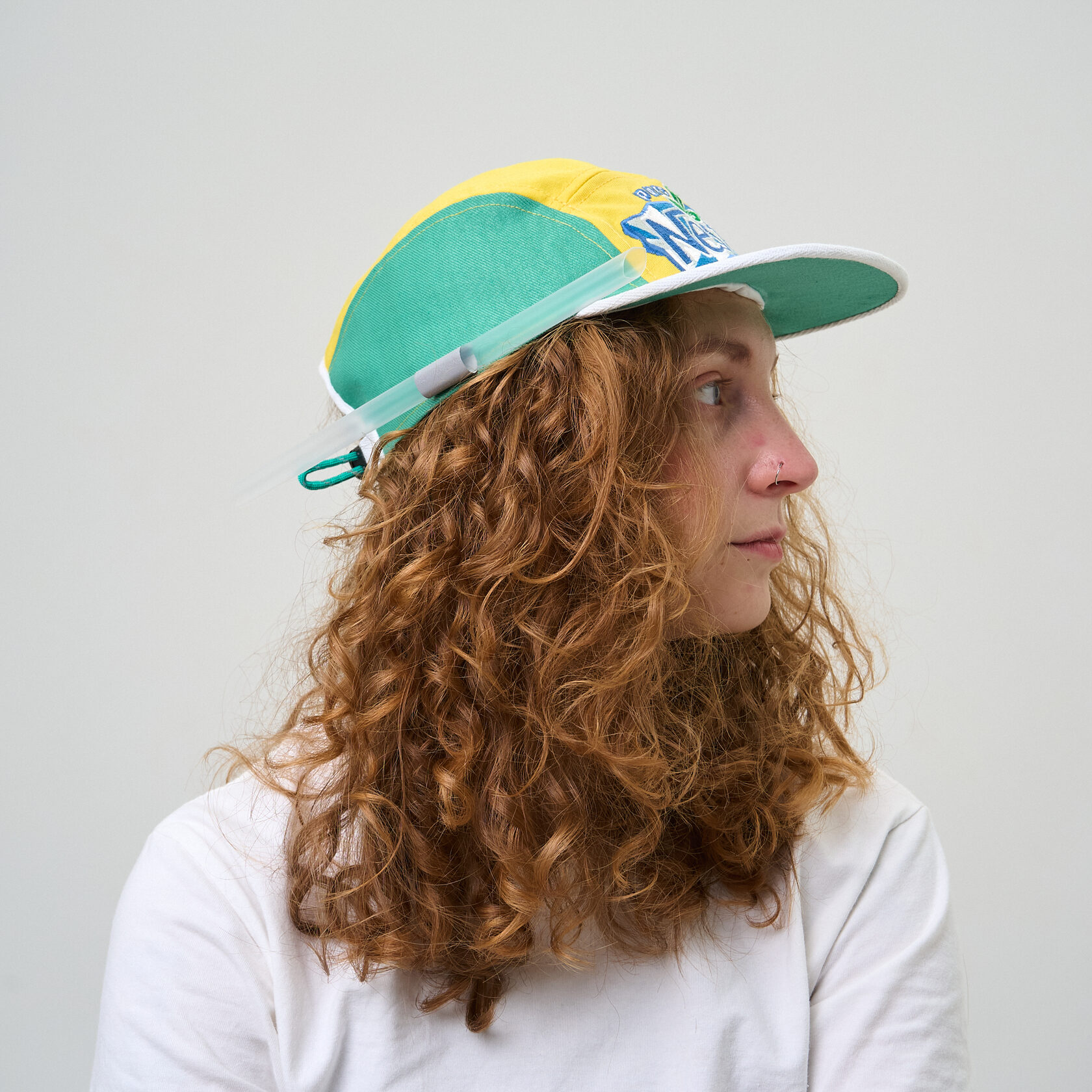 Глубокая посадка, стандартный козырёк, белая отсрочка. Логотип командного спонсора Nestea на передней панели, держатель для большой трубочки для Bobble-tea. Регулировка размера на кулисе.