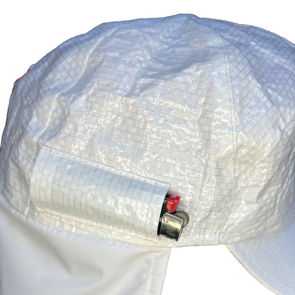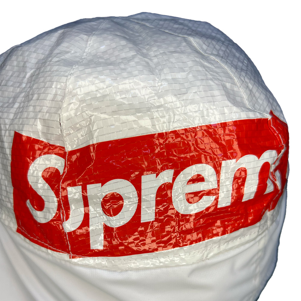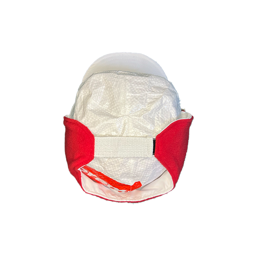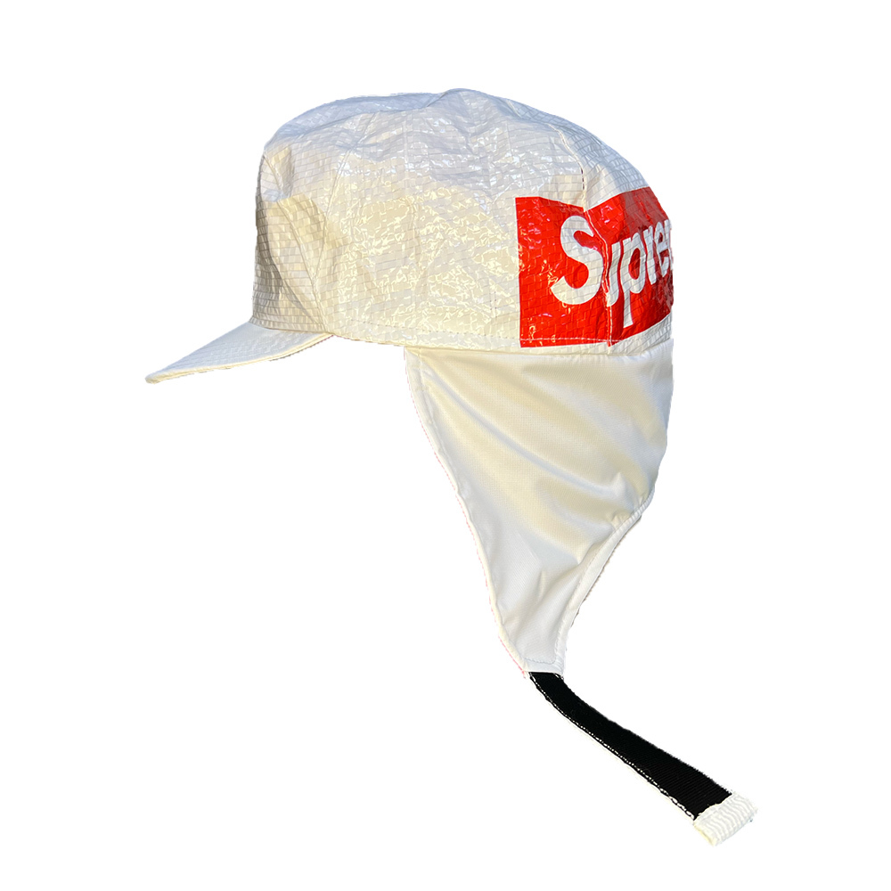 Ушанка из белого пакета-шопера Supreme, привезённого из Парижа. Утеплена корейским красным флисом, название-логотип Бренда на левой панели. Нижний отворот и козырёк выполнен из белой корейской мембраны.