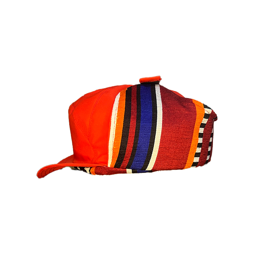 Ушанка из красной корейской мембраны, с подкладкой из египетского велюра, утеплённая синтетическим утеплителем слайтекс. Короткий козырёк, три положения ушей.