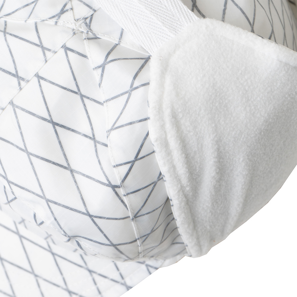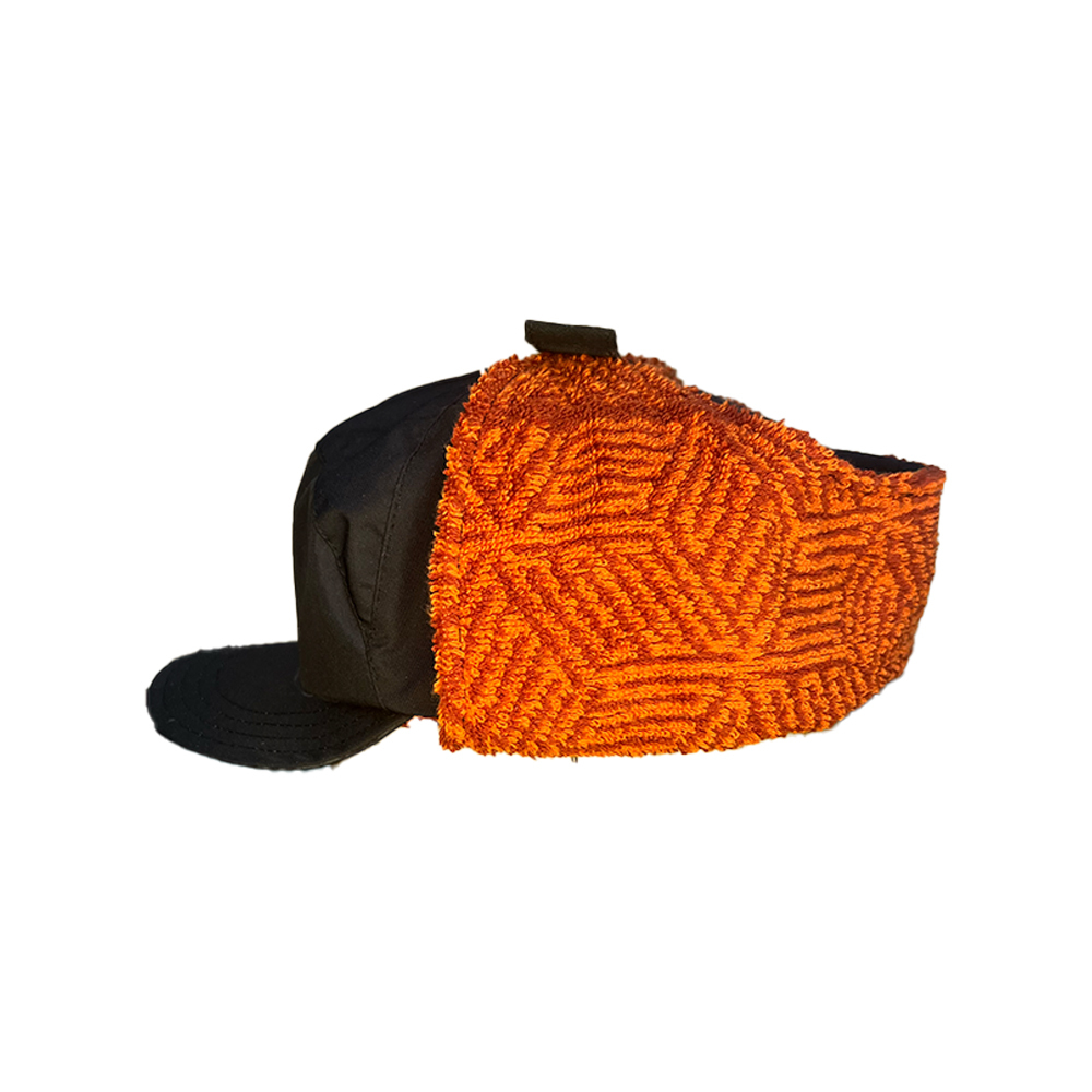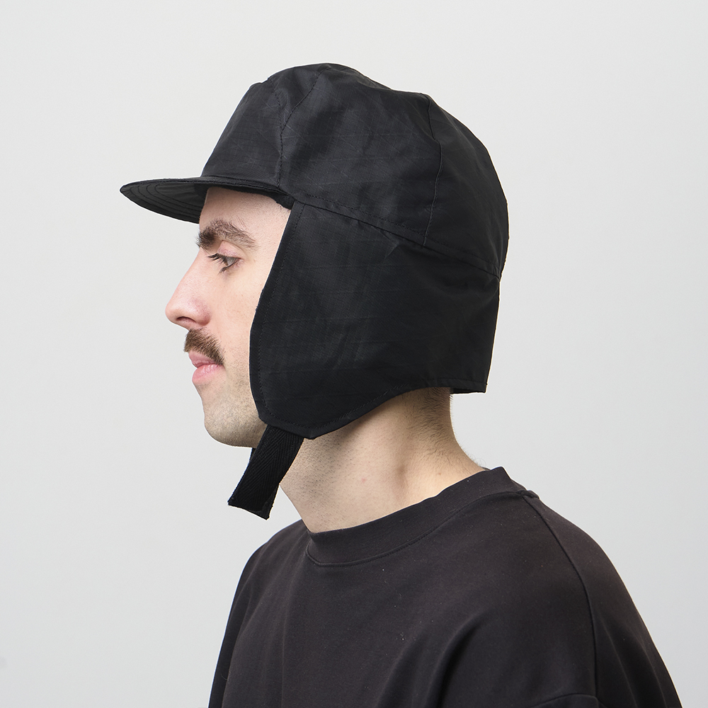 Ушанка из материала X-pac. Это композитная ткань, состоящая из нескольких слоев, устойчива к повреждениям, не впитывает воду и устойчива к ультрафиолетовому излучению.