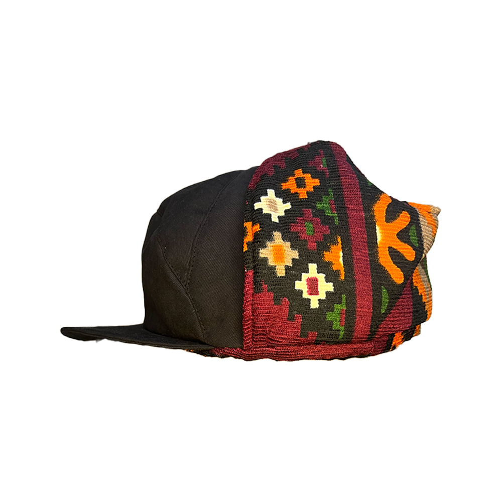 Двухсторонняя кепка-ушанка изготовленная из 100% итальянского кашемира чёрного цвета и вышитого полотна, привезенного из Королевства Бутан.